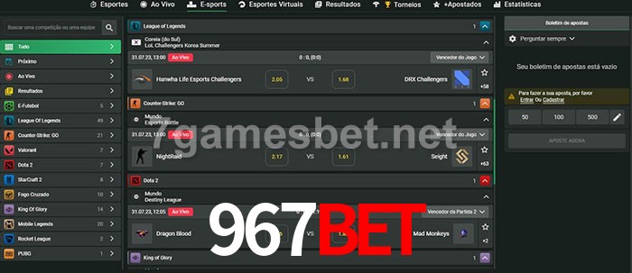 O 967bet oferece uma grande seleção de opções de apostas em e-sports com probabilidades competitivas